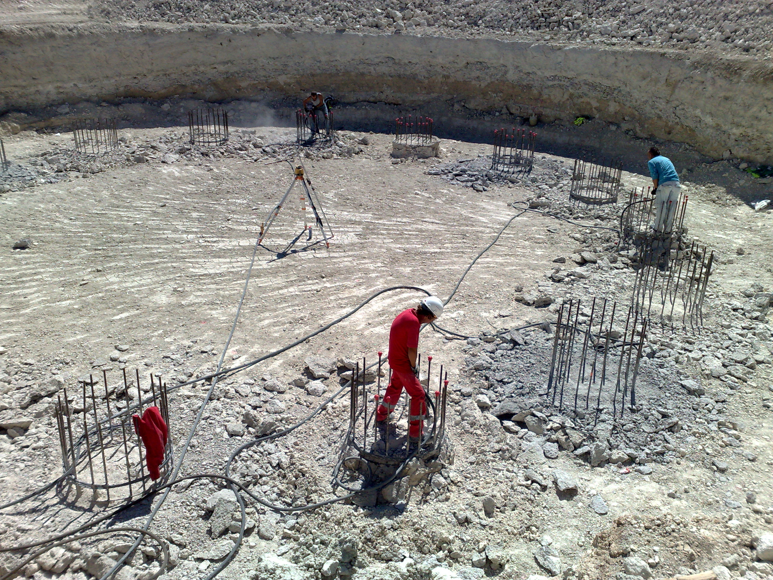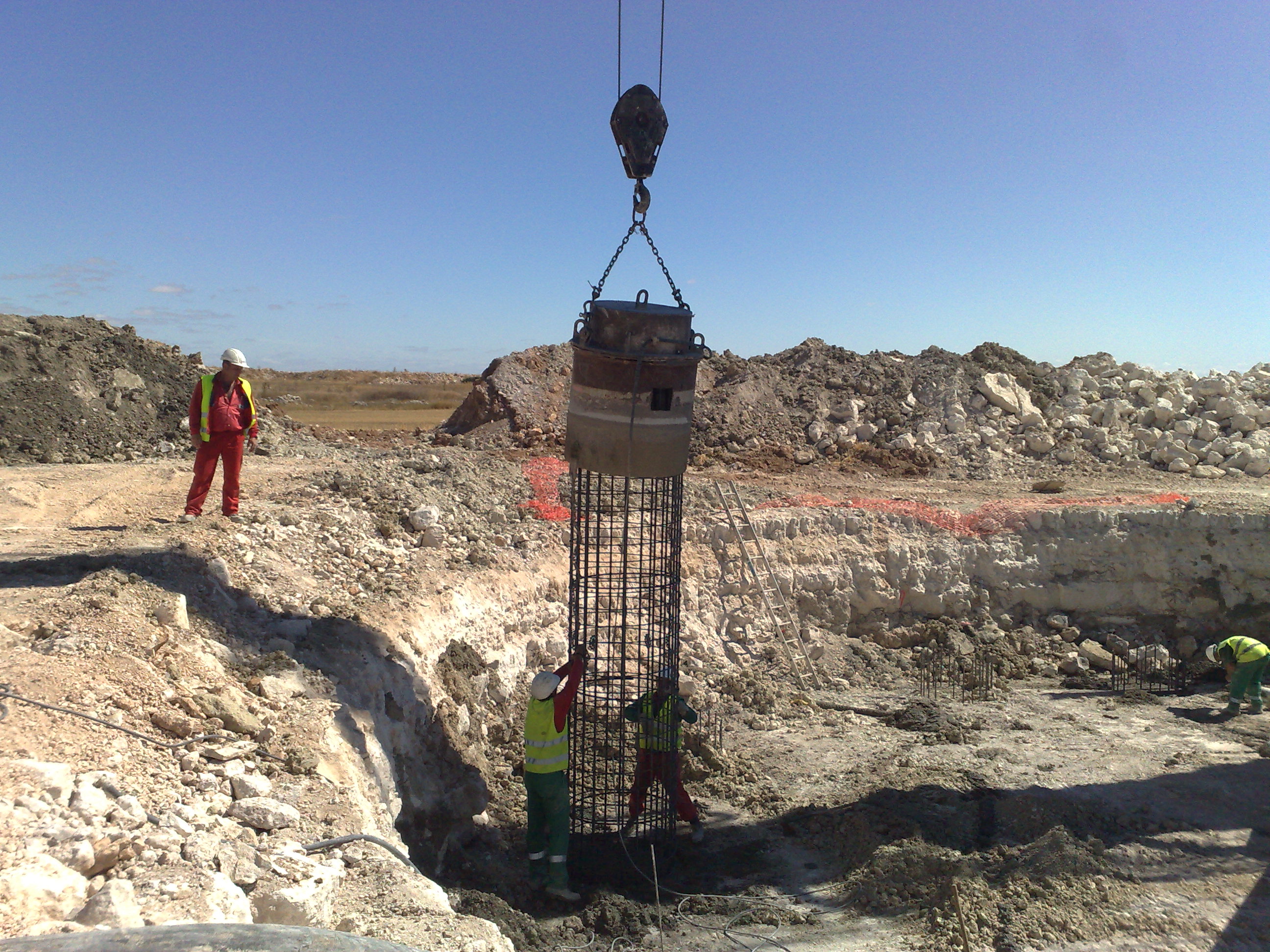 When the concrete hardens, after about a week, the head of the piles is removed using drills, leaving the steel bars clean and ready for the construction of the foundation.