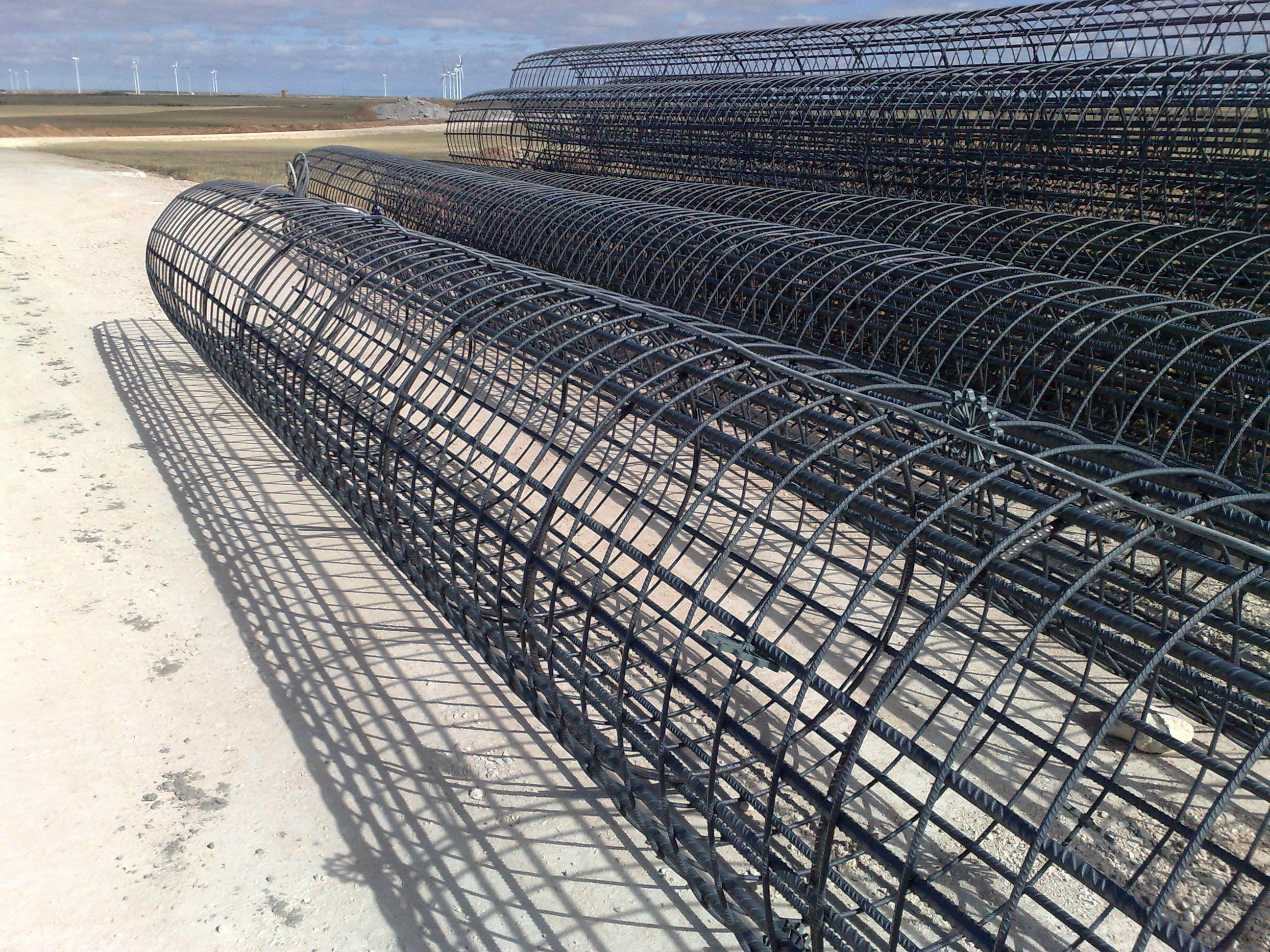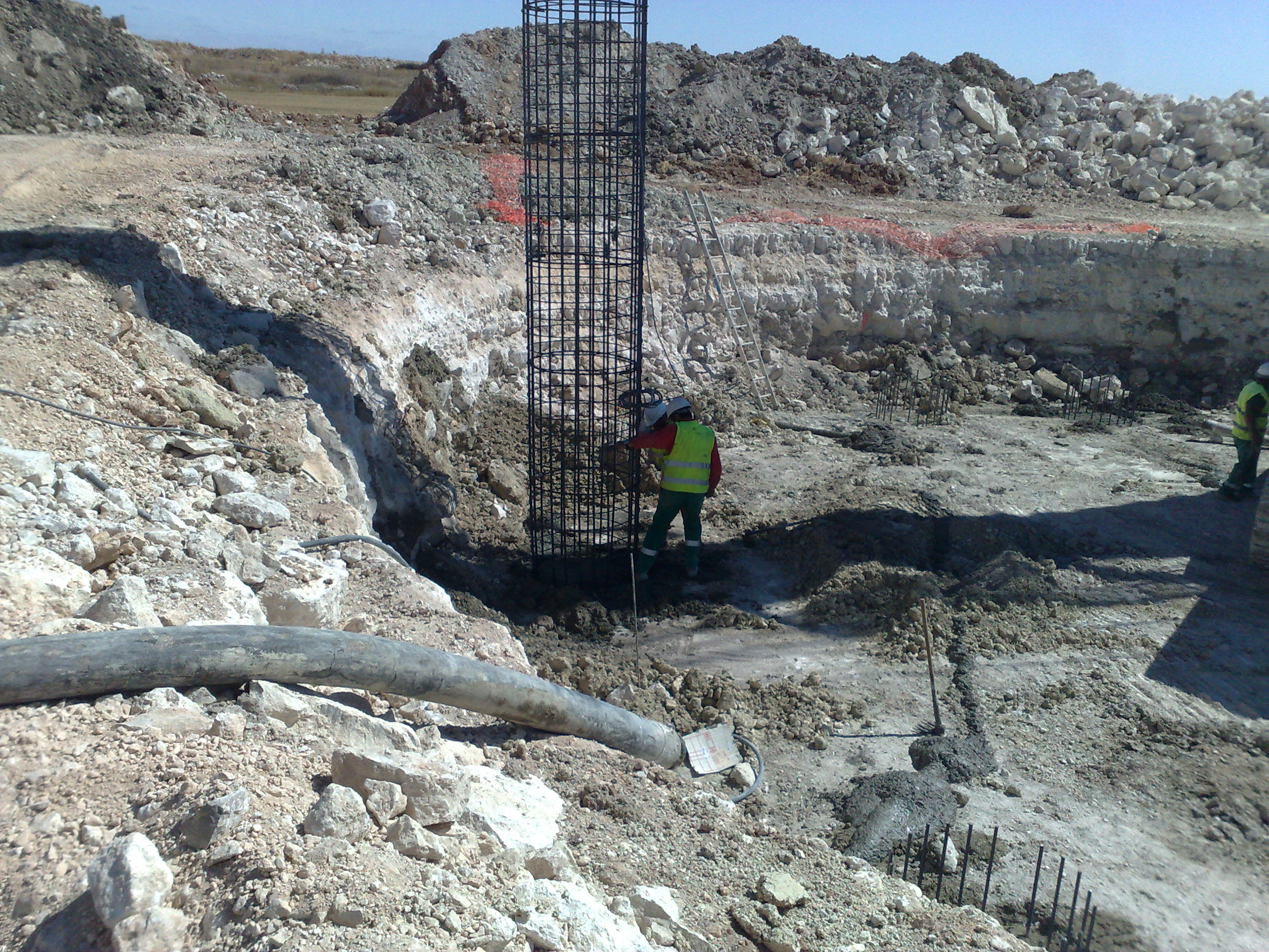 The following pictures are from a wind farm where due to the weak conditions of the subsoil a deep foundation with piles has been necessary, using a technique known as continuous flight augering (CFA).