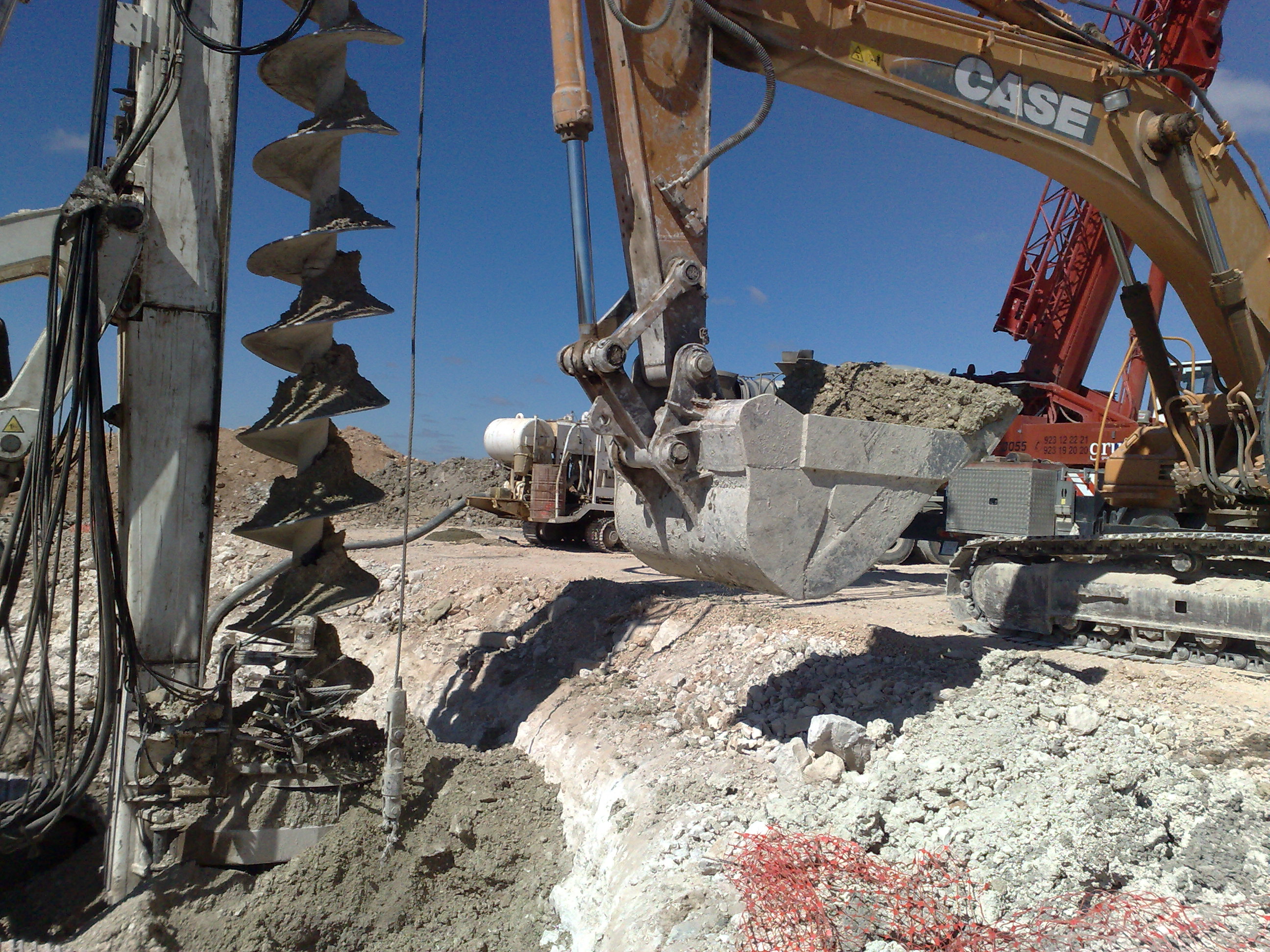 A dry hole has been made, without the use of bentonite or others drilling fluids to maintain vertical the walls of the hole: the earth is removed using an Archimedes’ screw, and than concrete is pumped inside the hole, slowing lifting the tool.