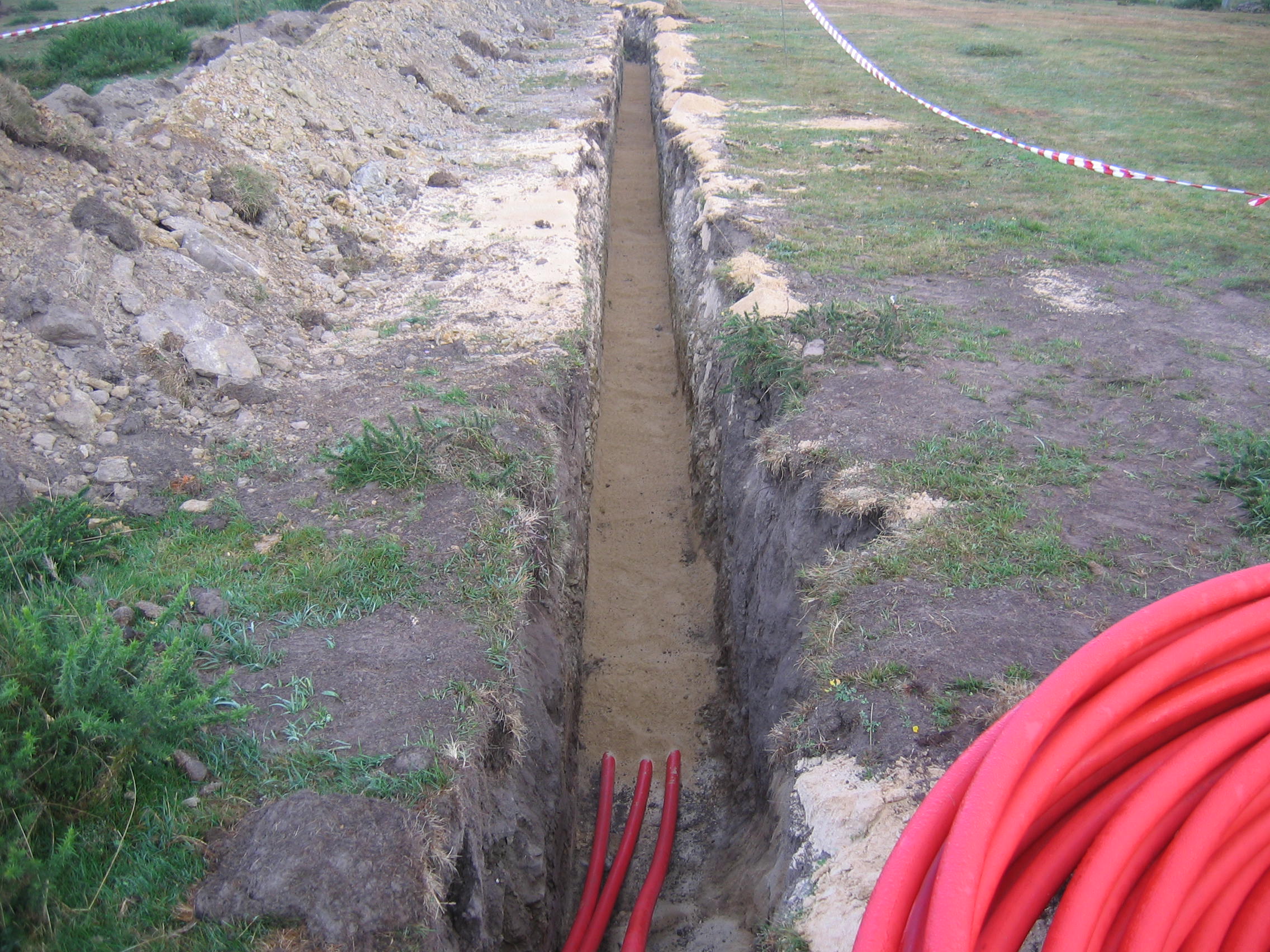 Above this second layer it will be placed, throughout the entire length of the trench, a HDPE cover tile marking the presence of underground cables.