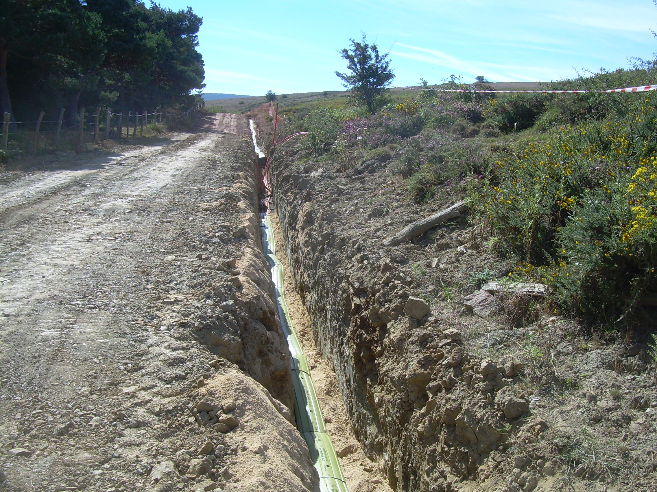 Finally, the backfilling of the trench will be completed with a layer of 30 cm using material coming from the excavations, free of stones, branches and roots, compacted properly. The last layer of backfill will be done with topsoil coming from the excavation and previously stored properly, in order to recover the natural environment of the area as soon as possible.