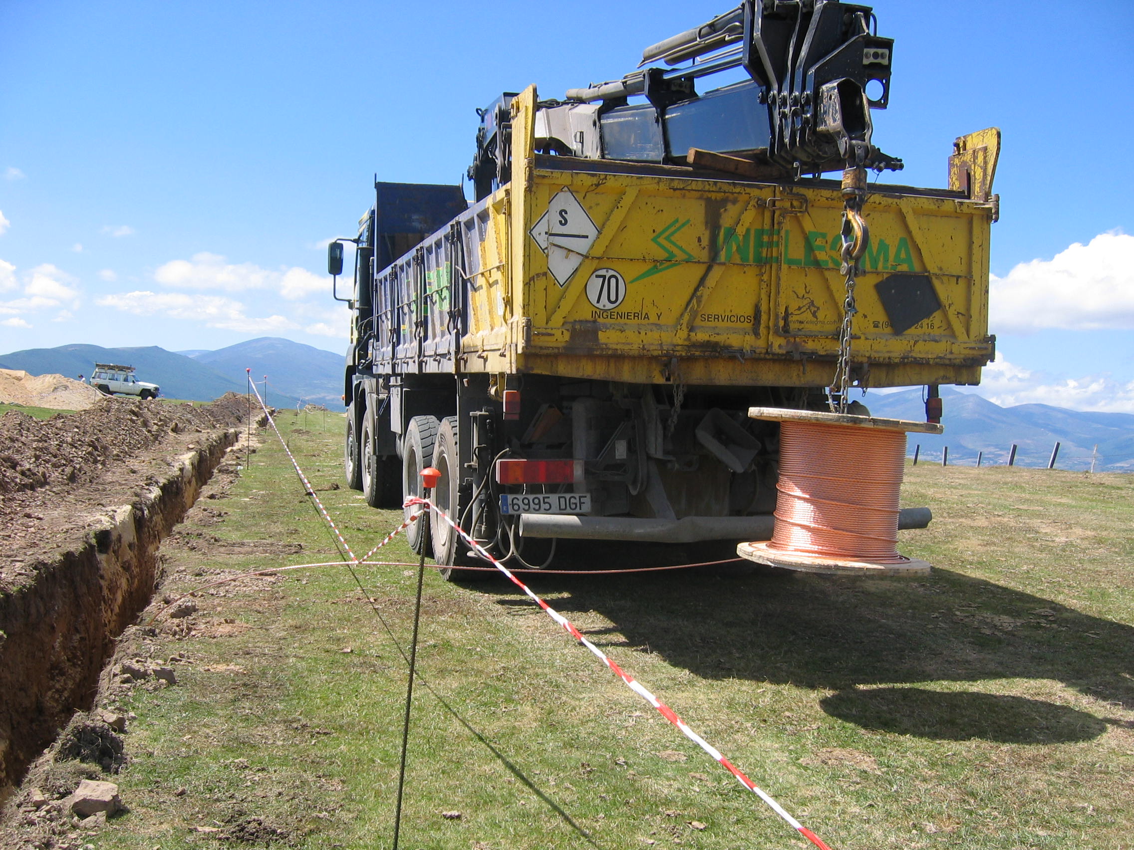 After the opening of the trench, on the bottom a layer of sand 10 cm thick is spread, placing above it the medium voltage cables, the ground cable and the optical fiber cable.