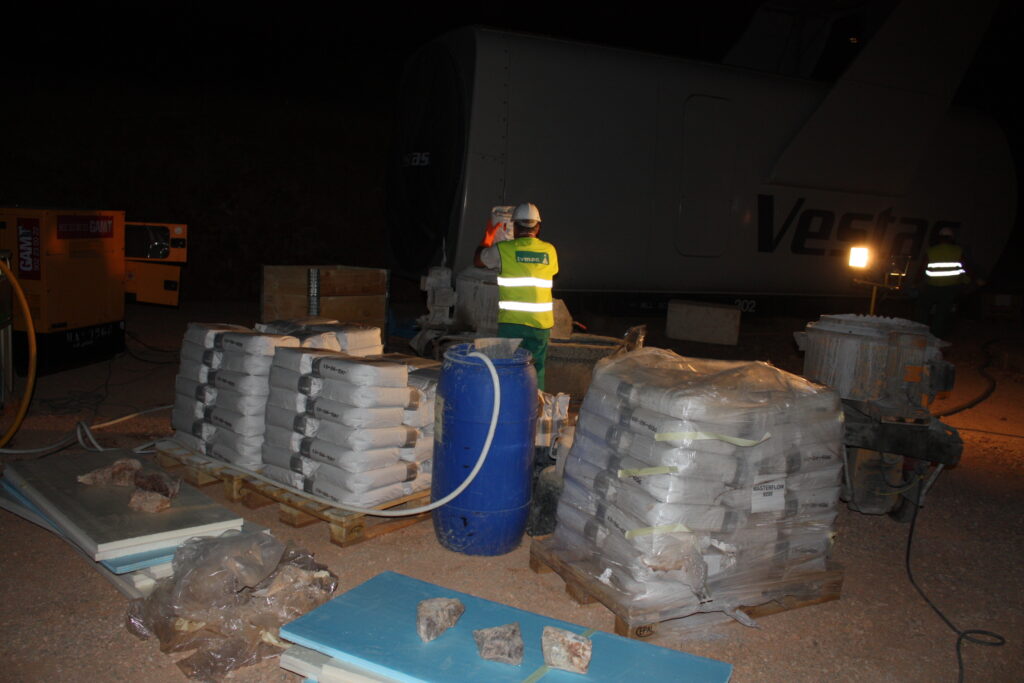 Other products used in the industry include for instance the Pagel V1/160 (common in German and northern European projects) and the FOSROC Conbextra range (used in some markets, particularly in southern Europe and Latin America). The FOSROC products are similar in concept — pre-blended, high-strength, non-shrink cementitious grouts — and the selection between brands is typically driven by the turbine manufacturer’s approved list and local availability.